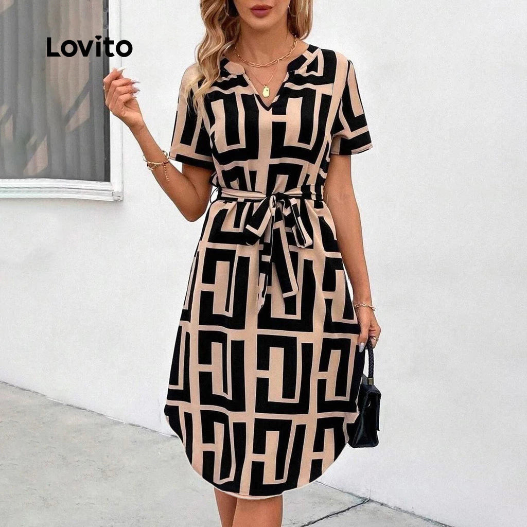 Vestido c/ estampa geométrica by Bike Tur ✅DESCRIÇÕES Padrão: Geométrico Estilo: Casual Tipo Vestido: Uma Linha Mais Tamanho: Não Material: Poliéster Composição: 100%Poliéster Tipo Fit: Ajuste Regular Transparente: Não Esticamento: Não ✅REFERÊNCIA DE MODELAGEM: tabela abaixo